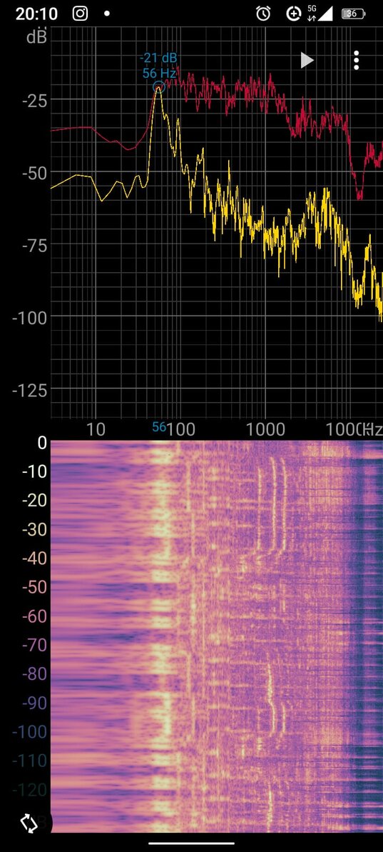 Faixa dominante: 56 Hz • Amplitude: –21 dB