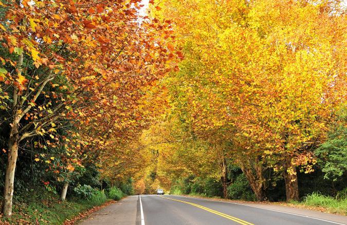 De clima europeu e estradas muito arborizadas e floridas, nos recordam cenas de filmes românticos.