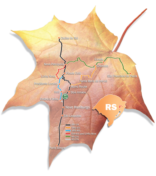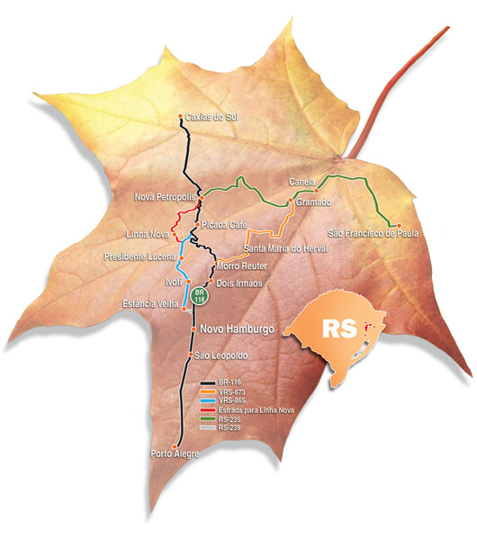 Algumas cidades que compõem a Rota Romântica não ficam às margens da BR-116, nem da RS-235